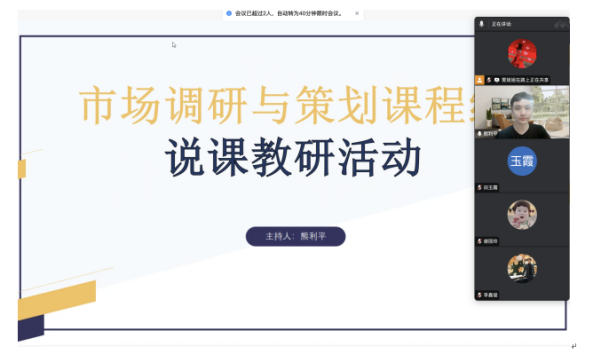 (贾雯)为更好地贯彻本科教学合格评估指标体系要求,落实《广州理工质评函2025年17号文件》的检查任务,2025年6月10日,市场调研与策划课程组在线上开展一场说课模拟演练教研活动,活动由课程组负责人熊利平老师主持,课程组负责人熊老师先介绍了本次说课模拟演练的背景、目的和意义,并强调了说课在提升教学质量、优化教学设计方面的重要作用。他鼓励教师们积极展示自己的教学理念和课程设计,通过互相学习和交流,共同提升教学水平。他提出:“此次活动是课程组老师对教学思维的凝练,不仅能提升教师的教学设计能力和语言表达能力,推进教学质量提升,更是响应公司积极备战本科教学合格评估的重要举措。”
