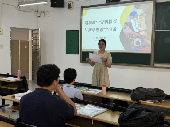 会议伊始,谢老师阐明了此次会议的重要意义。她强调,期初教学资料检查是保障教学规范的关键环节,新学期教学准备则关系到整个学期教学工作的有序开展,各教师需高度重视,严格落实各项要求,以严谨的态度和饱满的热情投入到教学工作中。