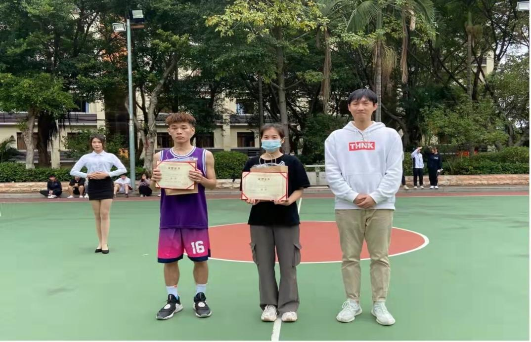 伟德国际1946辅导员刘海燕老师为本次“专业杯”篮球赛季军男子组花果山队和女子浑水摸鱼队颁发奖状。