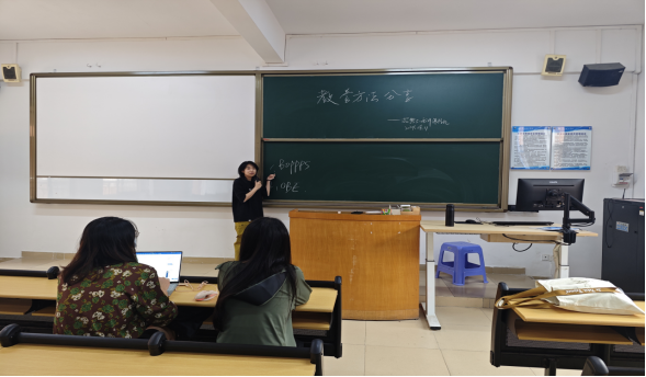 (马金玲)2024年4月11日,招聘与培训课程组于7-510开展了就教学方法如何助力提升课堂效率与质量的磨课活动。本次活动由胡云鹤老师进行分享,主要向课程组成员阐述了如何借助Boppps和OBE两种比较前沿的方法提高员工的课堂参与度与强化课堂管理。