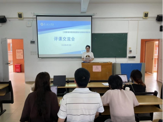 (徐上乔)2024年4月18日,一场以“评价颜琳桐老师课堂”为主题的交流会在白云校区综合楼508室举行,本次交流会聚焦于课程组成员颜琳桐老师的直播电商课堂,深入探讨颜老师的教学态度、教学方法及其教学效果,并以此为契机,助力课程组内的青年教师提升教学能力,进一步推动网络营销与新媒体课程的优化与发展。