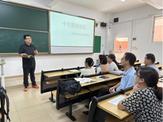 (李玉权)教学观摩、学习和磨课是提升教师教学质量和水平的关键途径。2024年10月17日下午,营销基础与沟通课程组在7栋教学楼205课室召开了主题为“课程组教学观摩与交流”的教学交流活动。此次活动旨在通过分享听课收获与自我教学经验,促进课程组教师更好地优化课程设计、授课质量、课堂管理等,以此达到相互提高的目的。通过此次会议,每位老师能从中获得启发,共同推动本科教学实践的创新与进步。
