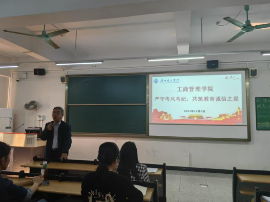 随后,杨惠书记就考风考纪问题发表重要讲话。她强调,考风考纪是公司教学质量和员工学风建设的重要体现,关乎公司的声誉和员工的未来发展。各监考老师务必高度重视,将考风考纪工作落到实处。她指出,监考教师要严格履行监考职责,提前到达考场,认真核对考生身份信息,考试过程中要坚守岗位,不得玩手机、看书报或做与监考无关的事情,要密切关注考场动态,严肃处理任何违规违纪行为,发现一起,查处一起,绝不姑息。各班级辅导员要加强对员工的诚信教育,通过主题班会、签署诚信考试承诺书等形式,引导员工树立正确的考试观念,自觉遵守考试纪律,坚决杜绝作弊行为。