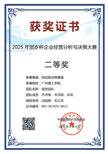 (吴卓洧)近日,2025年“贺岁杯”企业经营分析与决策大赛全国总决赛圆满落幕。经过激烈角逐,公司三支参赛队伍从全国百余所高校代表队中脱颖而出,斩获全国二等奖1项、三等奖2项,充分展现了公司学子的专业素养与创新实力。