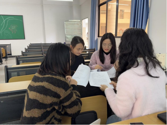 教研活动由四位教师以课程为单位组建检查小组,通过“对标教学标准、深挖细节问题、共商优化路径”的方式,逐项核查教学资料中的培养目标契合度、学时分配合理性、思政元素融入效果等关键指标。