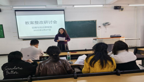 (李若琪)为进一步规范教学管理,确保新学期教学工作顺利开展,2月27日,《招聘与培训》课程组在12栋804开展了2024-2025年第二学期期初教学资料整改及磨课活动。本次活动由课程组组长梁金如老师主持,课程组全体教师参加了此次活动。