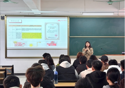 随后,陈晓燕女士对京东物流的发展历程、企业文化以及人才培养体系进行了介绍。她重点讲解了“京苗班”计划,这是京东物流为培养未来基层管理人才推出的重要项目。通过与京东亚洲一号广州九龙物流园的合作,员工将有机会参与收货、拣选、复核、打包等实际操作,深入了解现代物流运作模式。