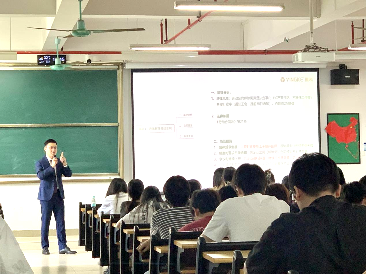 (何心宇)为帮助老员工在求职过程中增强法律意识、规避风险,公司特邀北京市盈科(广州)律师事务所股权高级合伙人林晓军律师,于下午15:00在13-401开展题为“求职中的法律风险于防范”专题讲座。由电商专业教师周卓凡、胡学斌、徐玉雪等现场对接,讲座现场同学反响热烈,收益颇丰。