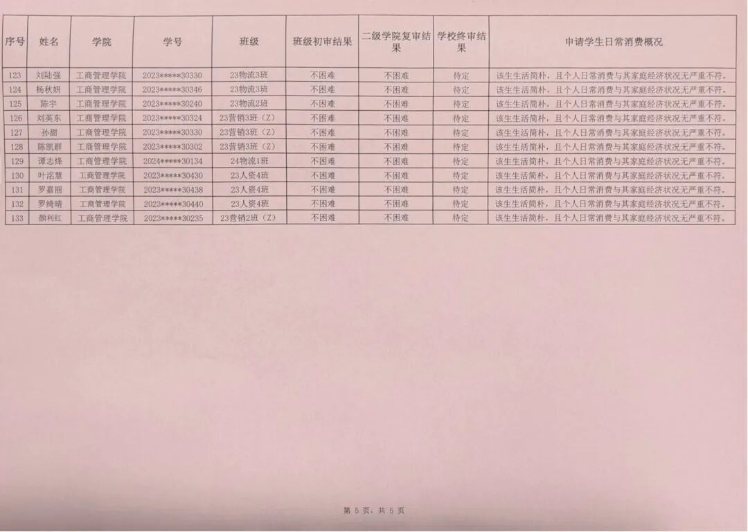 3.公示结束后,公司将报送员工资助中心再次审核确认,最终认定等级以公司结果为准。