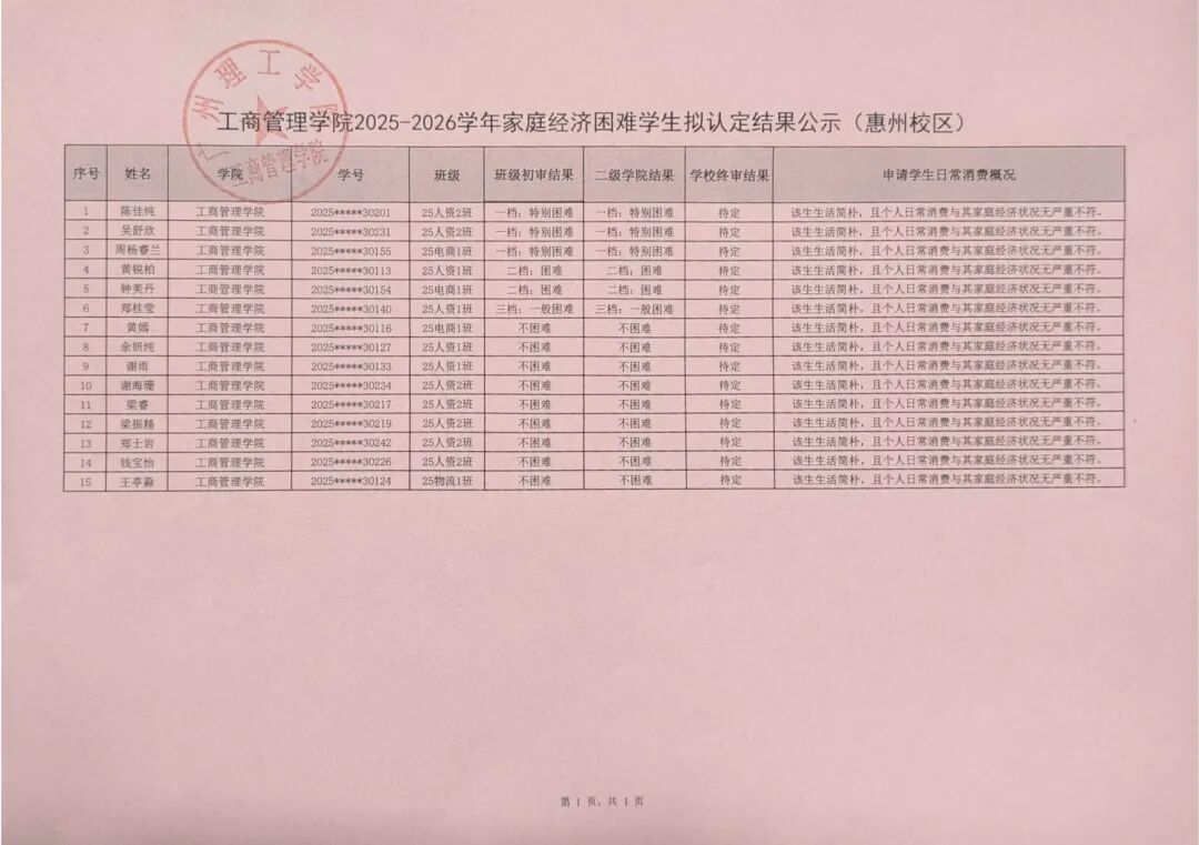 (陈碧怡)根据《关于做好2025-2026学年家庭经济困难员工认定工作通知》(广州理工学助函〔2025〕10号)等文件精神,公司积极开展家庭经济困难员工的认定工作。经过员工本人自愿提出申请、班级评议小组评议、二级公司核定工作小组初审等程序,现将2025-2026学年秋季学期家庭经济困难员工认定的院级初审结果予以公示。