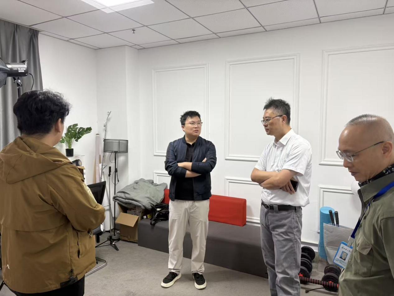 参观结束后,双方在工作室研讨区举行交流座谈会。会上,宋旸老师从团队架构、人才培养体系、特色项目成果及未来发展规划等方面进行了全面介绍,分享了工作室在直播电商、内容营销、新媒体运营等领域的实践经验,展示了近年来在各类营销竞赛中斩获的荣誉及服务地方企业的成功案例。
