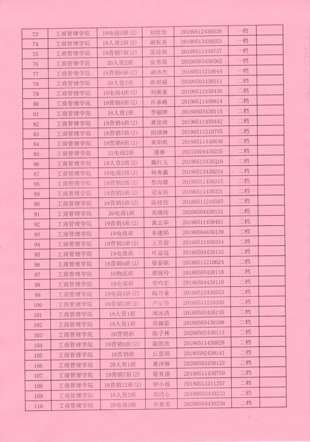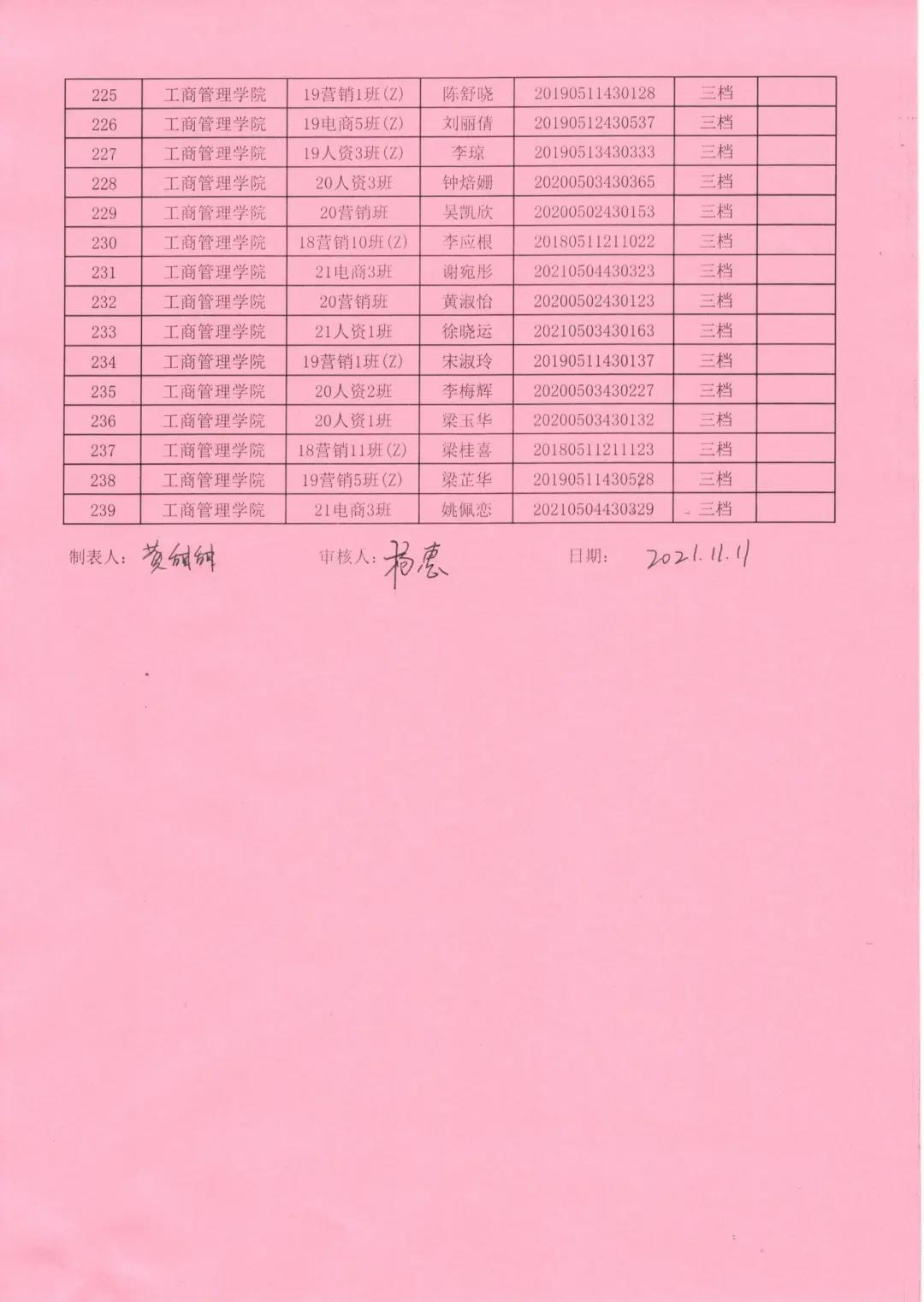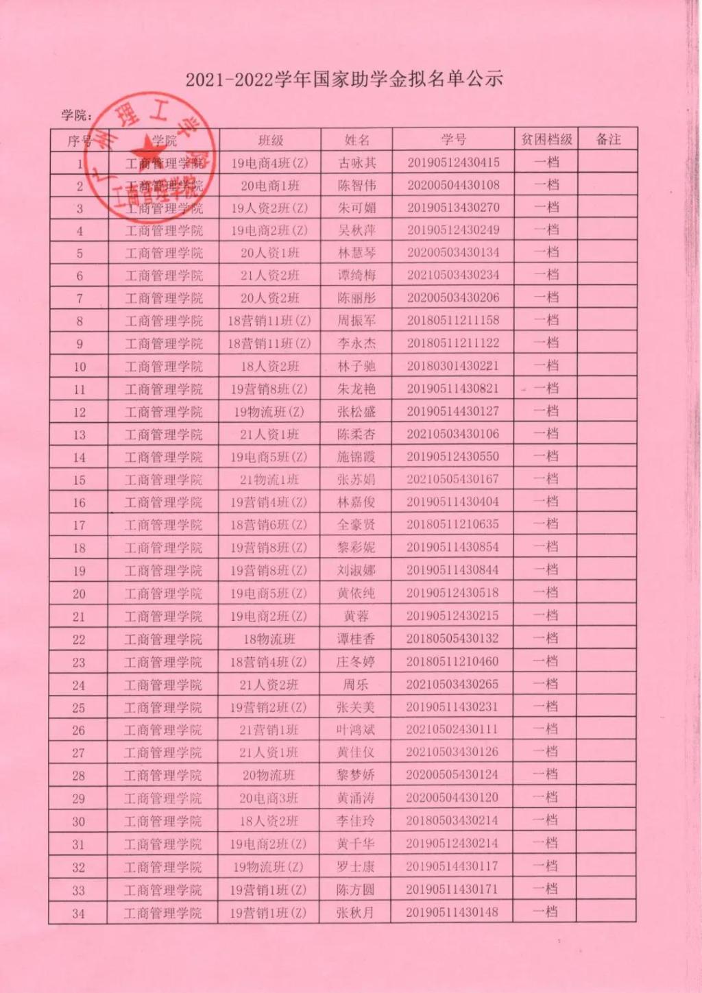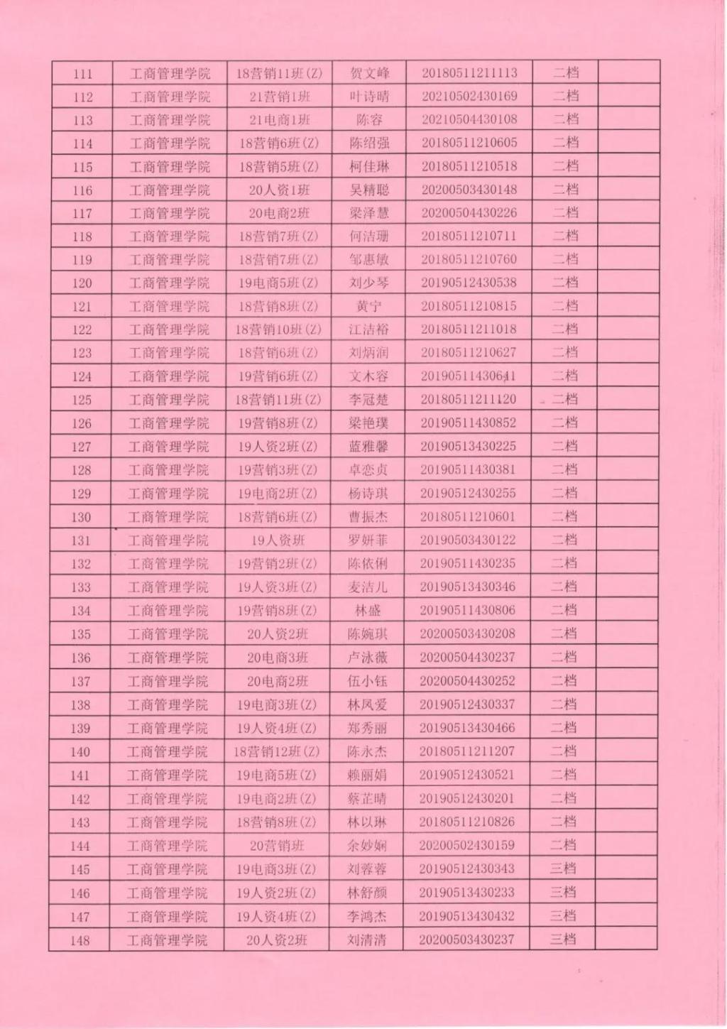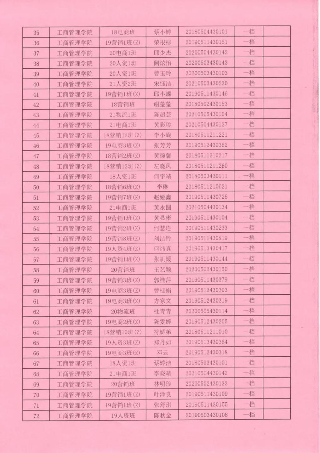 2021—2022学年获得助学金名单公示