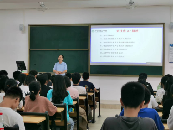 (刘金国)9月13日上午,2023级物流管理专业新生齐聚惠州新校区1号教学楼402课室,聆听物流管理系刘金国老师入学专业教育讲座。
