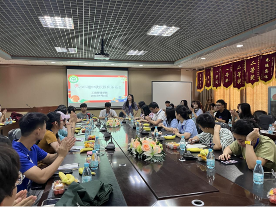(罗嘉艳)9月26日12:30,伟德国际1946于7栋301举行2023年迎中秋庆国庆座谈会。此次座谈会是为了在双节来临之际与同学们共庆佳节,同时借此机会让师生欢聚一堂,聆听同学们的声音,促进师生间的交流。出席本次座谈会的有公司党总支书记杨惠、全体辅导员以及21级专升本新生班代表,本次会议由学工办主任刘丹主持。