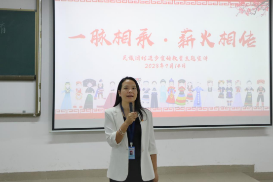 (杨伟琼 鄢璐)9月14日下午,公司党总支书记杨惠为公司员工开展了一场关于民族团结进步宣传月主题宣讲会。宣讲会以“一脉相承,薪火相传”为主题,旨在提高员工对于民族团结进步的理解,增强对中华优秀传统文化的认同感。