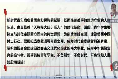 铸魂育人,思政先行。本次“思政第一课”的顺利开展,有助于同学们增强政治意识,明确时代赋予青年一代的责任,同时也激励他们要让奋斗成为青春最亮丽的底色,将个人奋斗“小目标”融入党和国家事业“大蓝图”,积极投身全面建设社会主义现代化国家的火热实践中。
