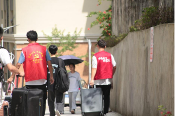 志愿者协助新生搬运行李杨伟琼摄