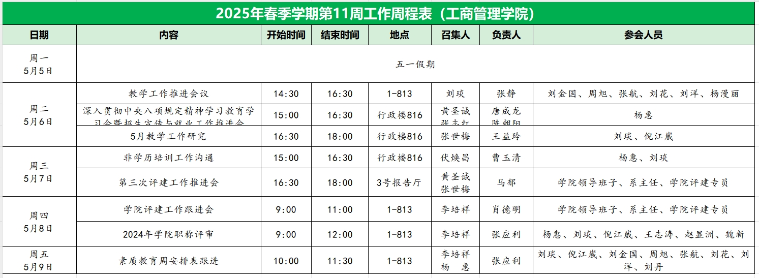 2025年春季学期第11周工作周程表
