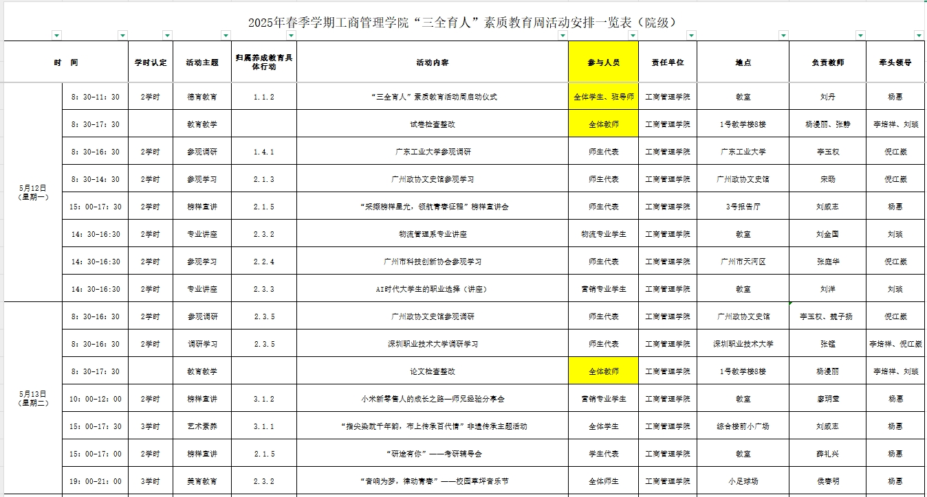 2025年春季学期“三全育人”素质教育周工作周程表