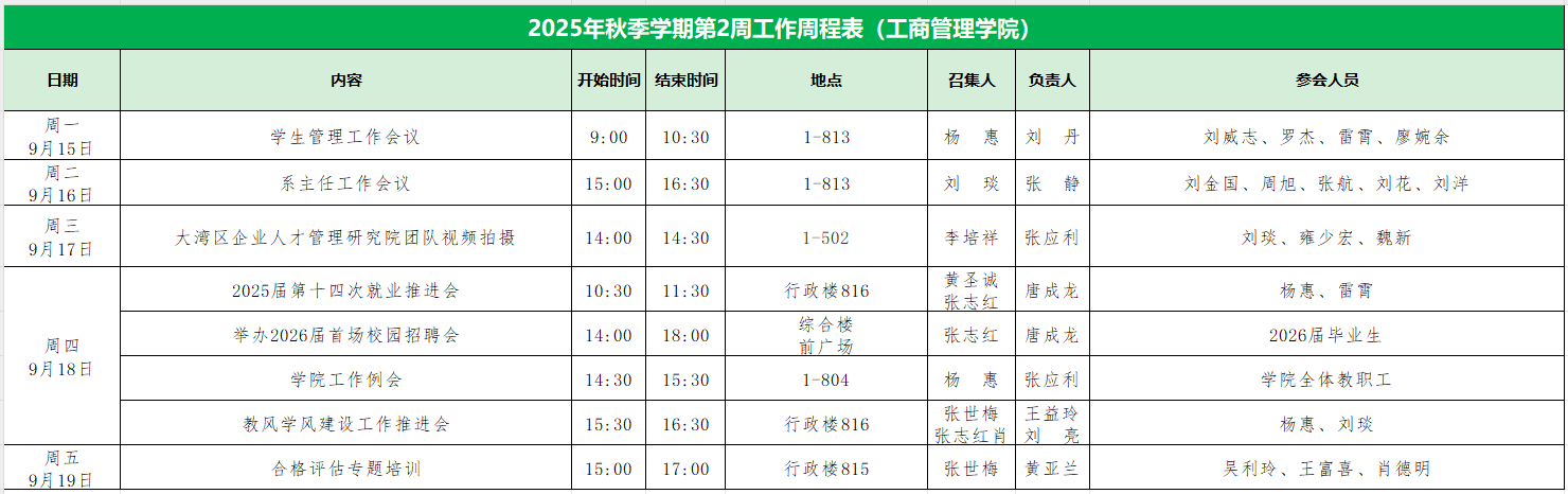 2025年秋季学期第2周工作周程表