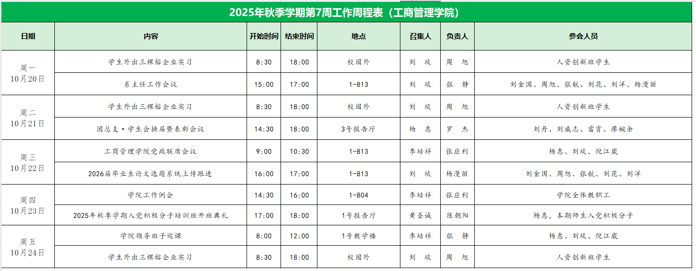 2025年秋季学期第7周工作周程表