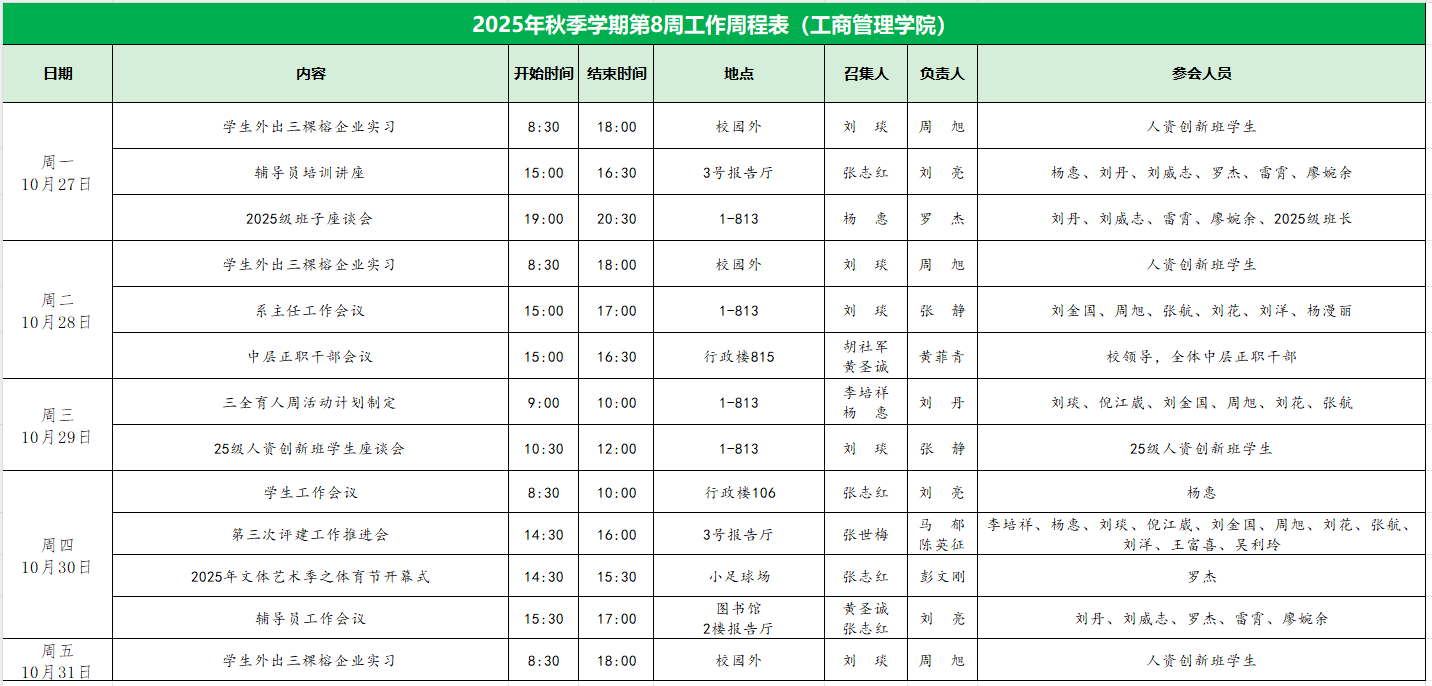 2025年秋季学期第8周工作周程表