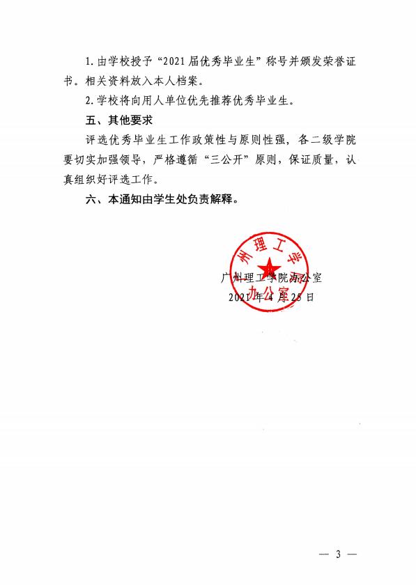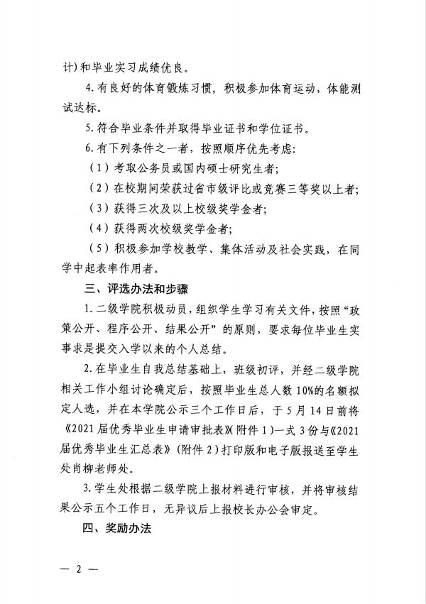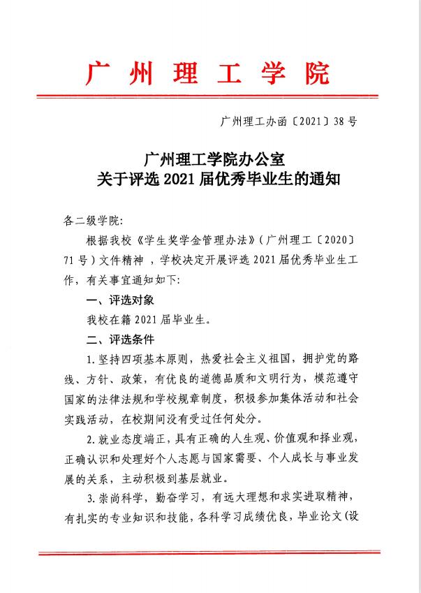 关于评选2021届优秀毕业生的通知