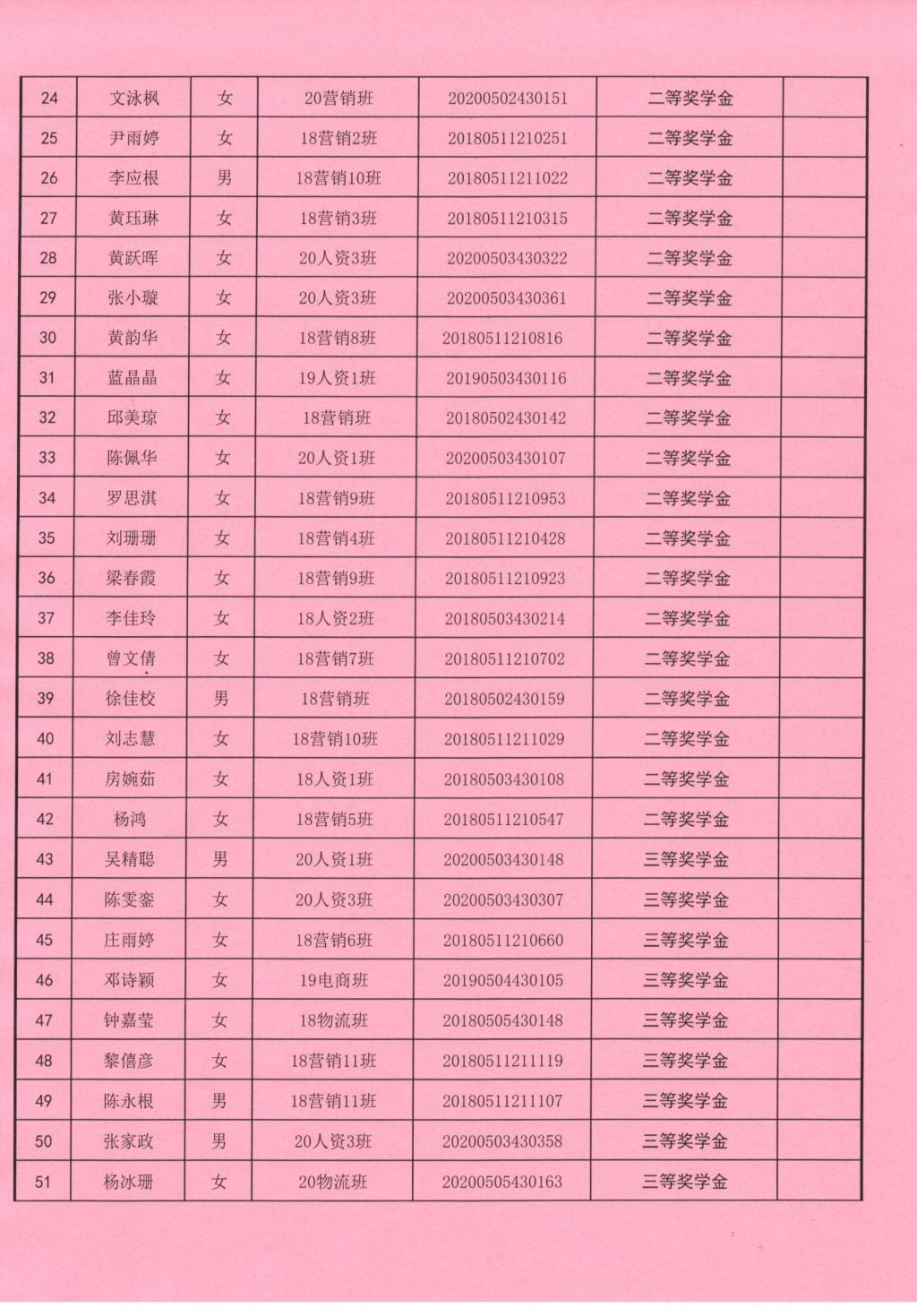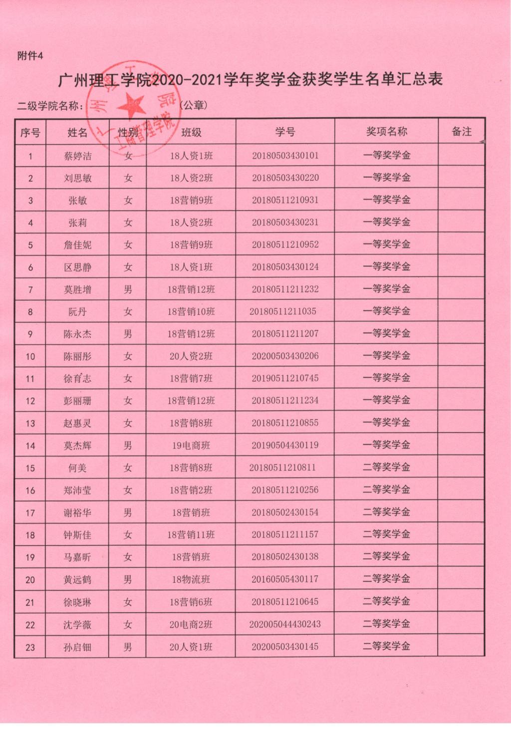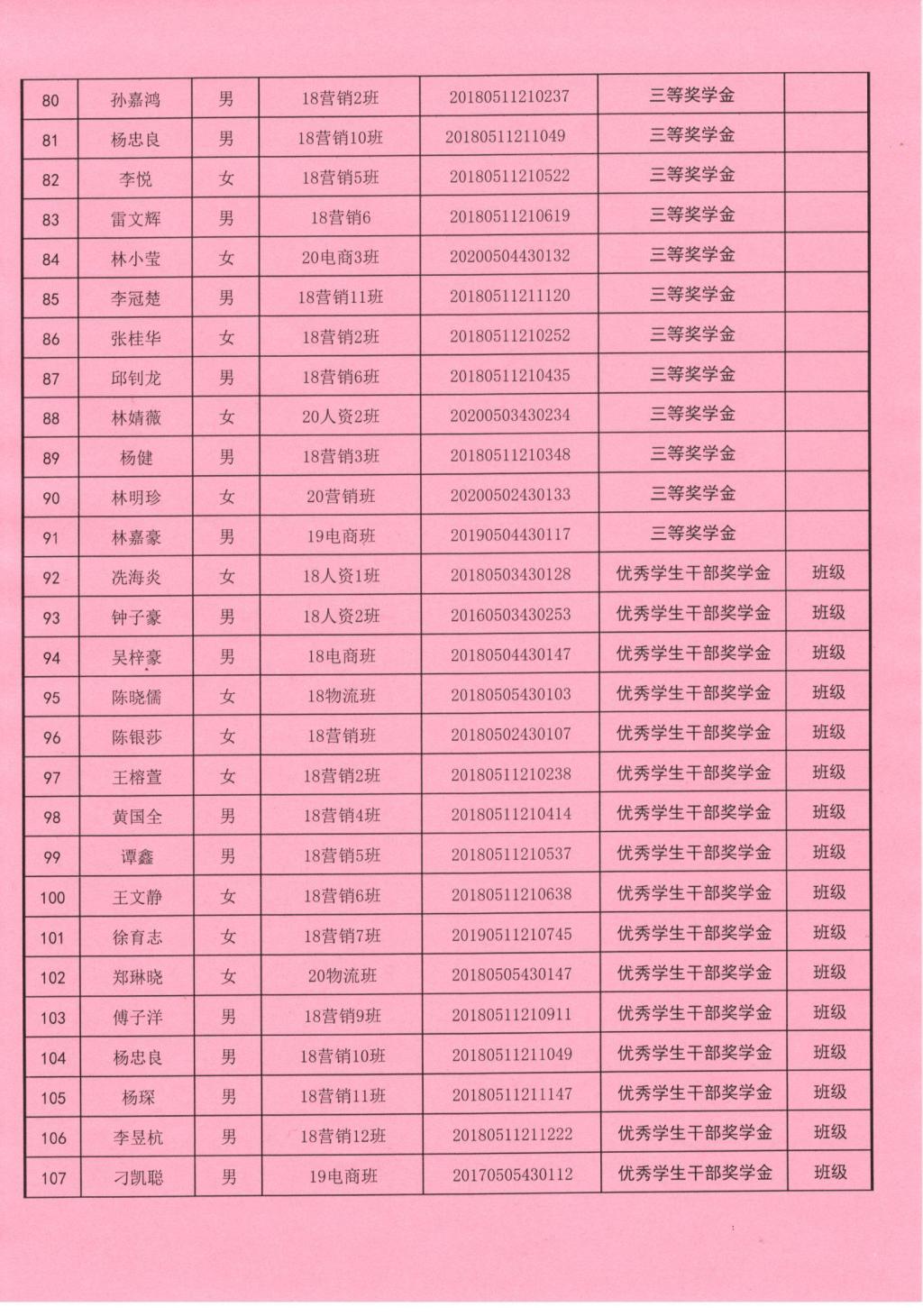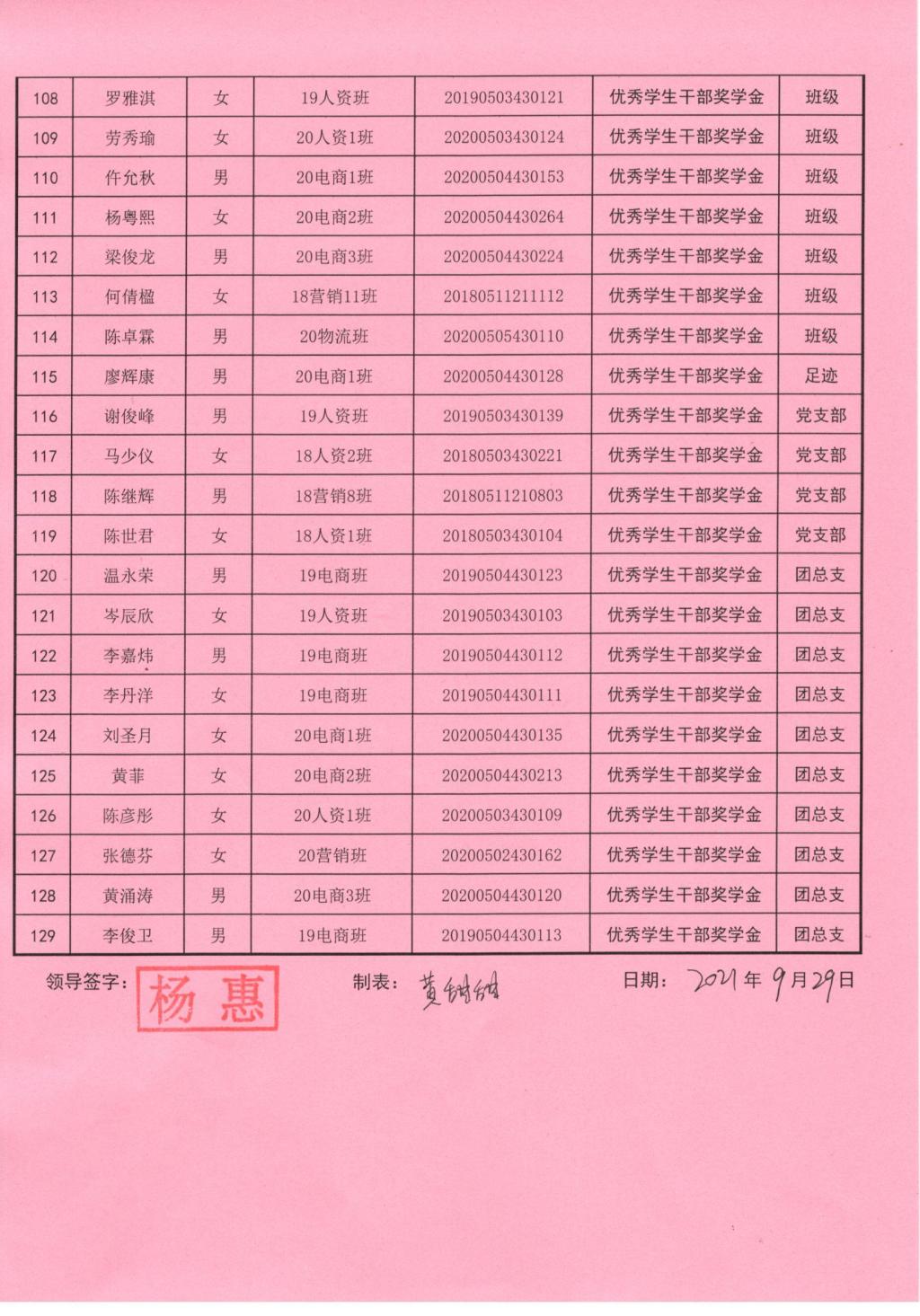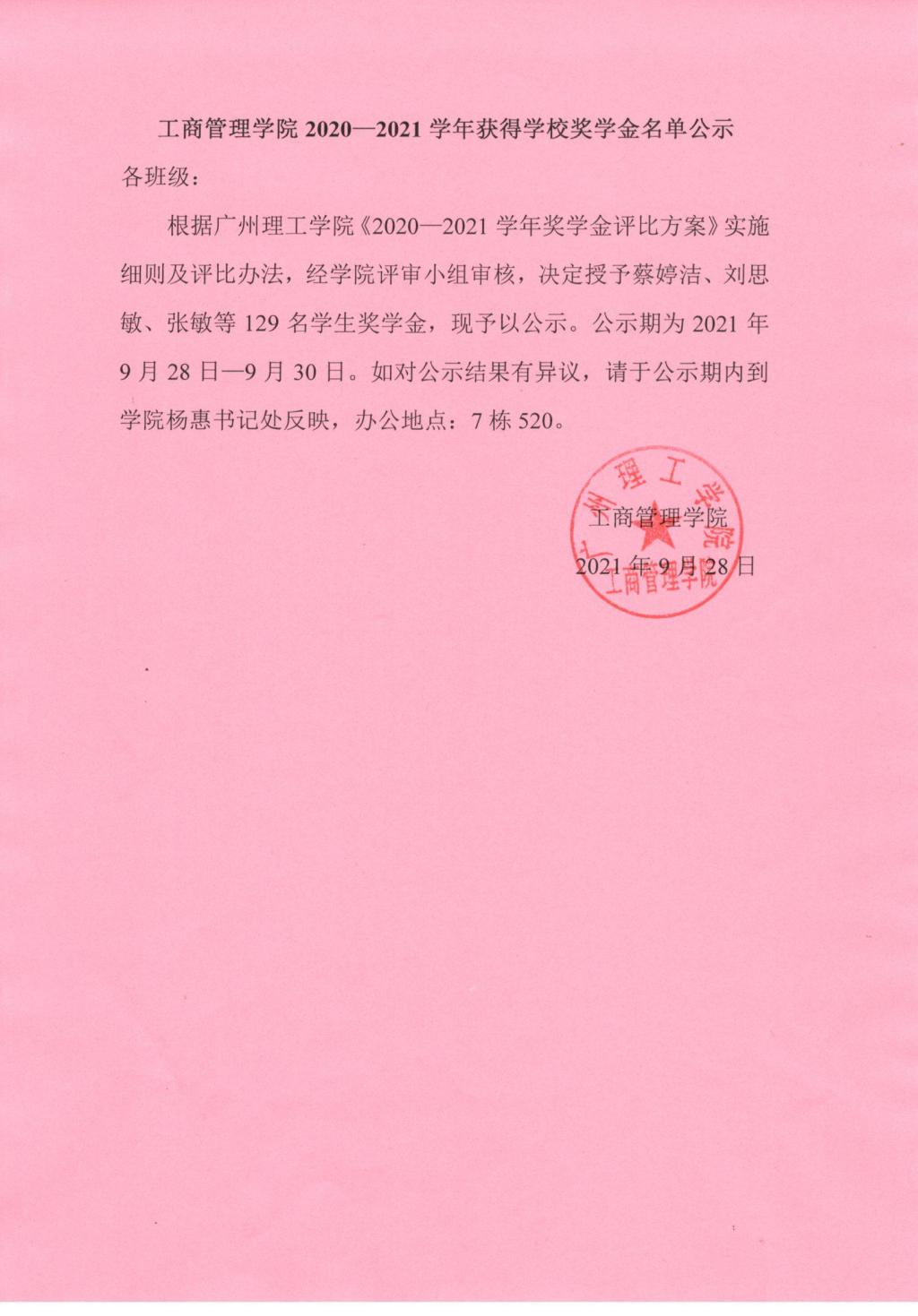 2020-2021学年获得公司奖学金名单公示