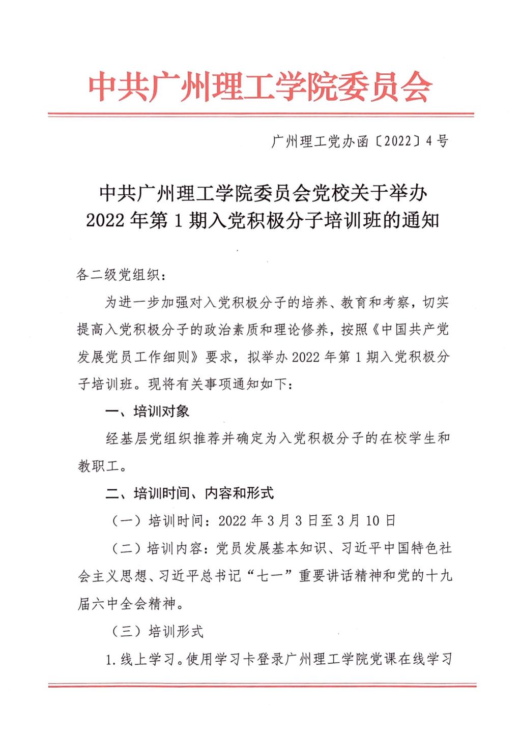 中共伟德国际1946委员会党校关于举办2022年第1期入党积极分子培训班的通知