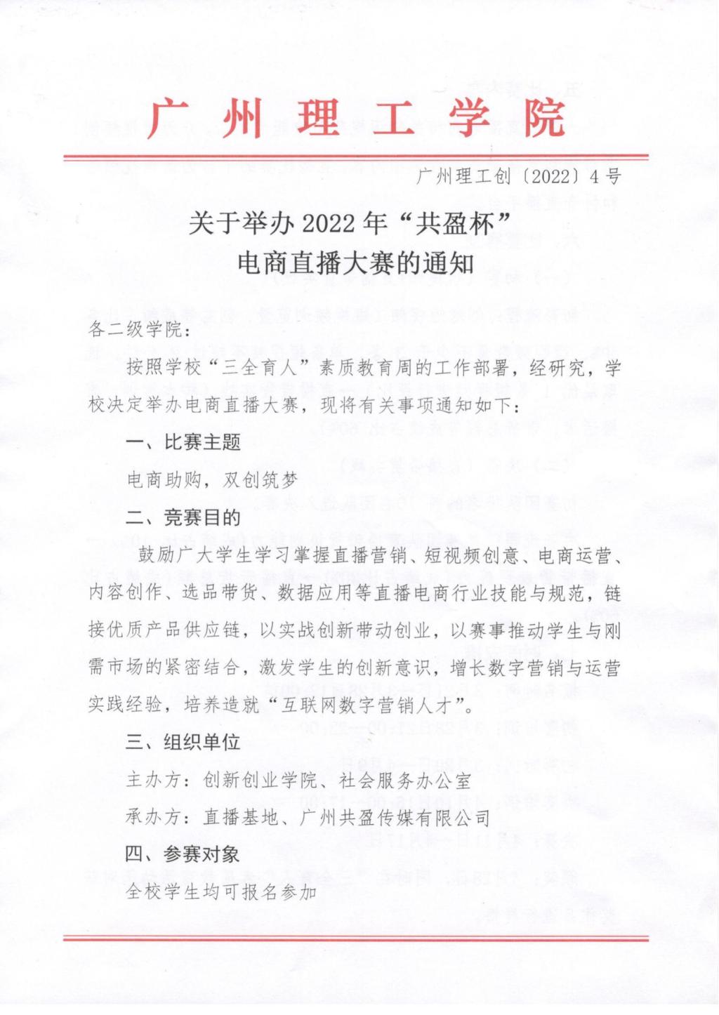 关于举办2022年“共盈杯”电商直播大赛的通知