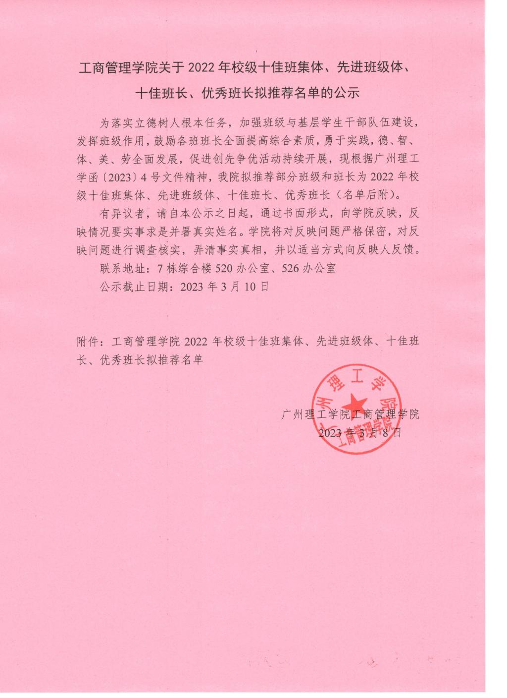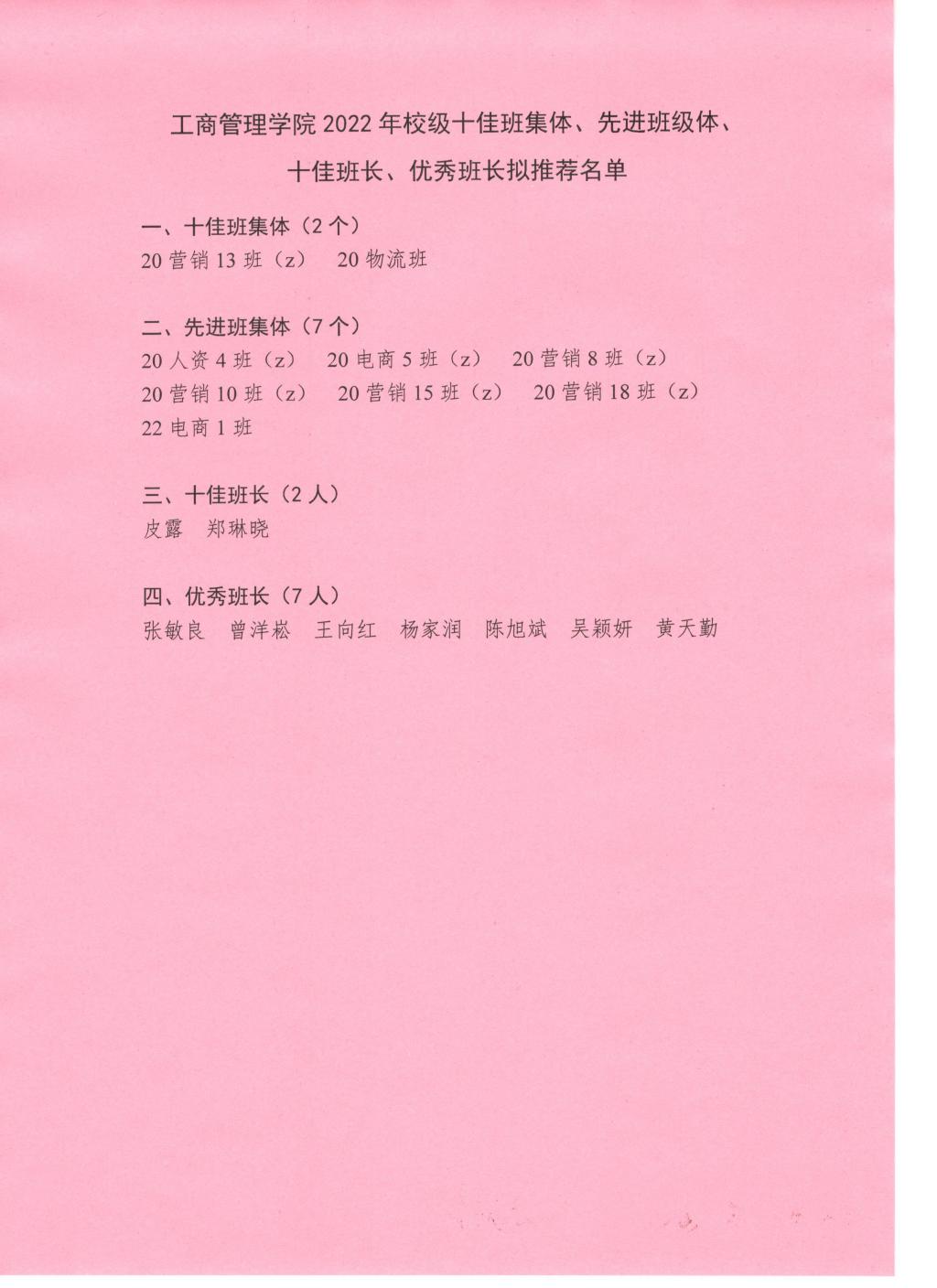 伟德国际1946关于2022年校级十佳班集体、先进班级体、十佳班长、优秀班长拟推荐名单的公示