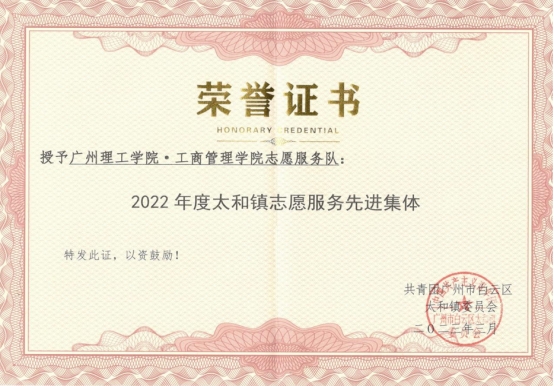 (邱晨曦,吴海宁)3月9日,伟德国际1946·伟德国际1946志愿服务队被共青团广州市白云区太和镇委员会授予“2022年度太和镇志愿服务先进集体”称号。