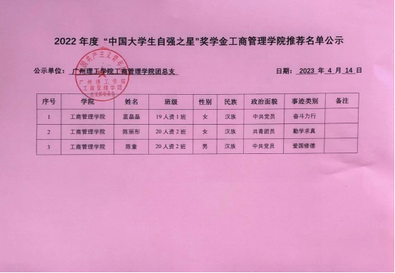 本次推荐名单的公示期为2023年4月14日至2023年4月18日 (共5天)如有异议,请于公示期内向团总支书记张应利处反映,办公地点:7栋520。