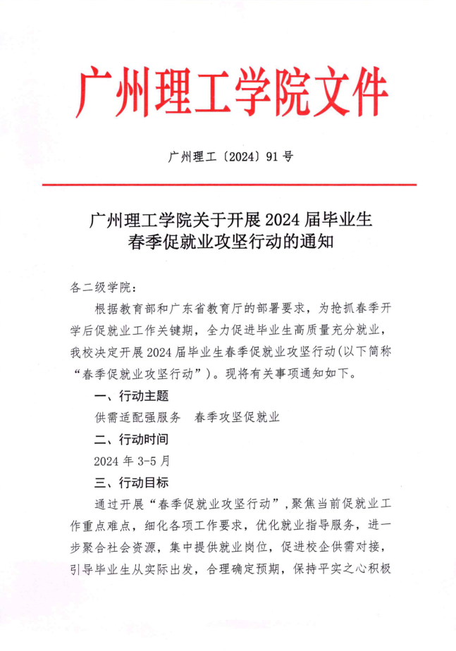 关于开展2024届毕业生春季促就业攻坚行动的通知