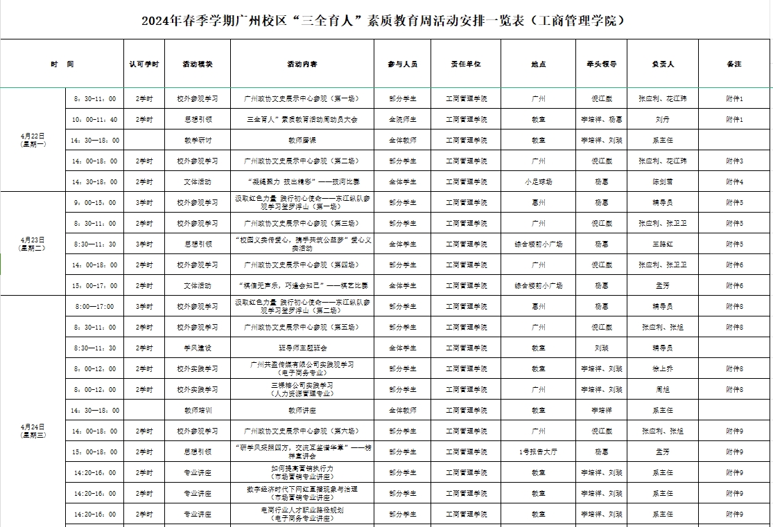 2024年春季学期广州校区“三全育人”素质教育周活动周程表