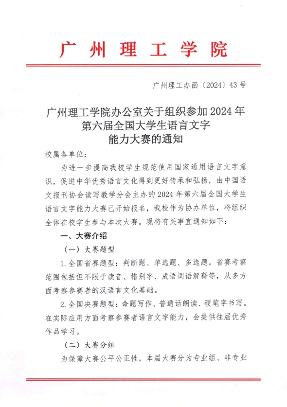 关于组织参加2024年第六届全国老员工语言文字能力大赛的通知