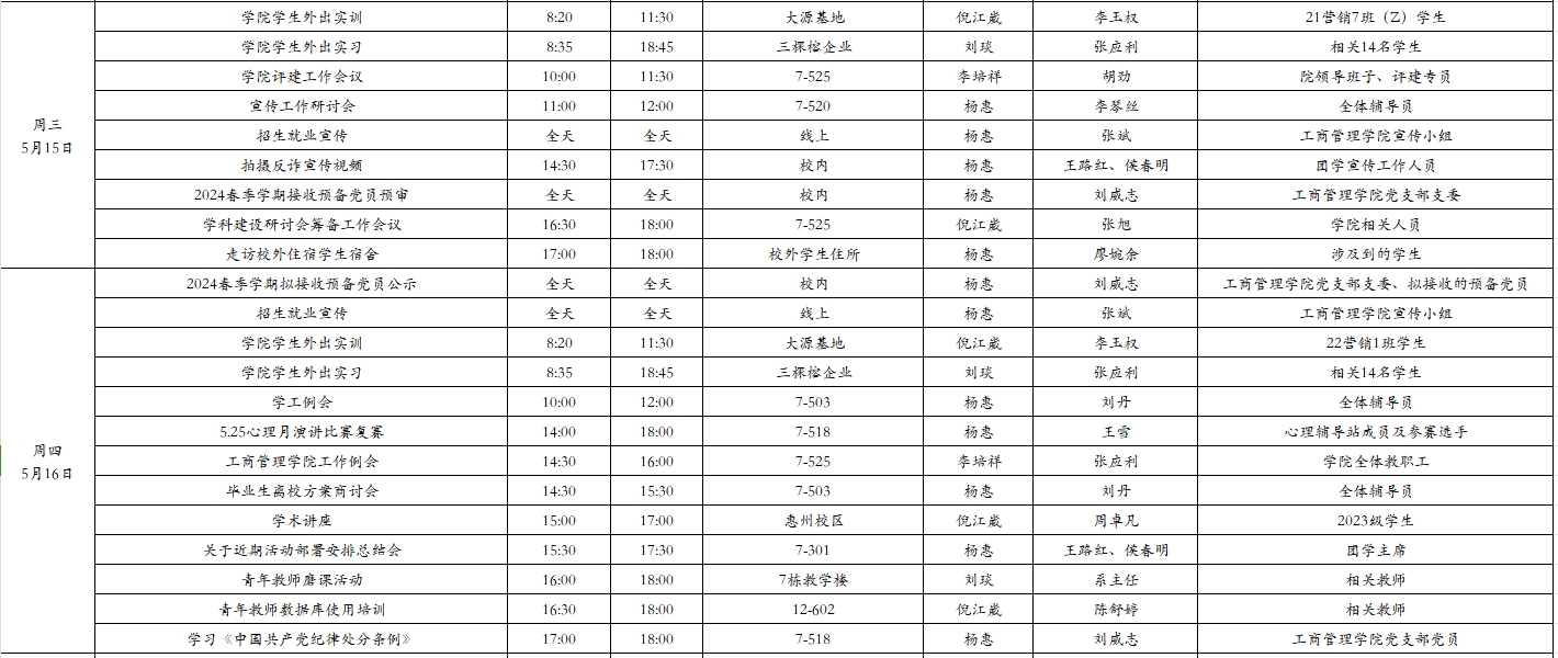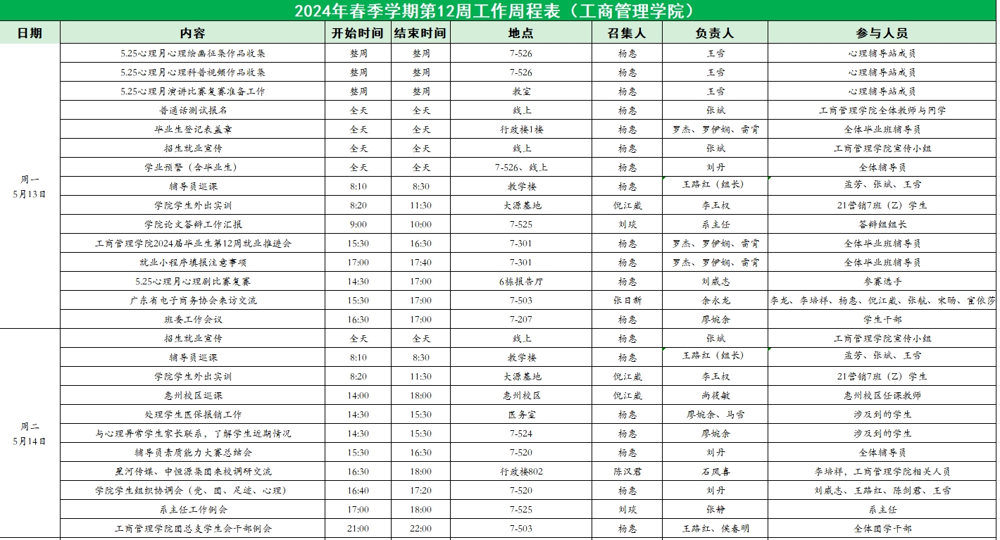 2024年春季学期第12周工作周程表