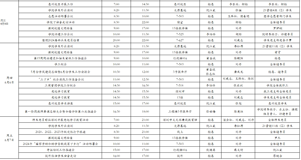 2024年春季学期第15周工作周程表