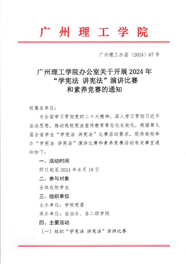 关于开展2024年“学宪法 讲宪法”演讲比赛和素养竞赛的通知