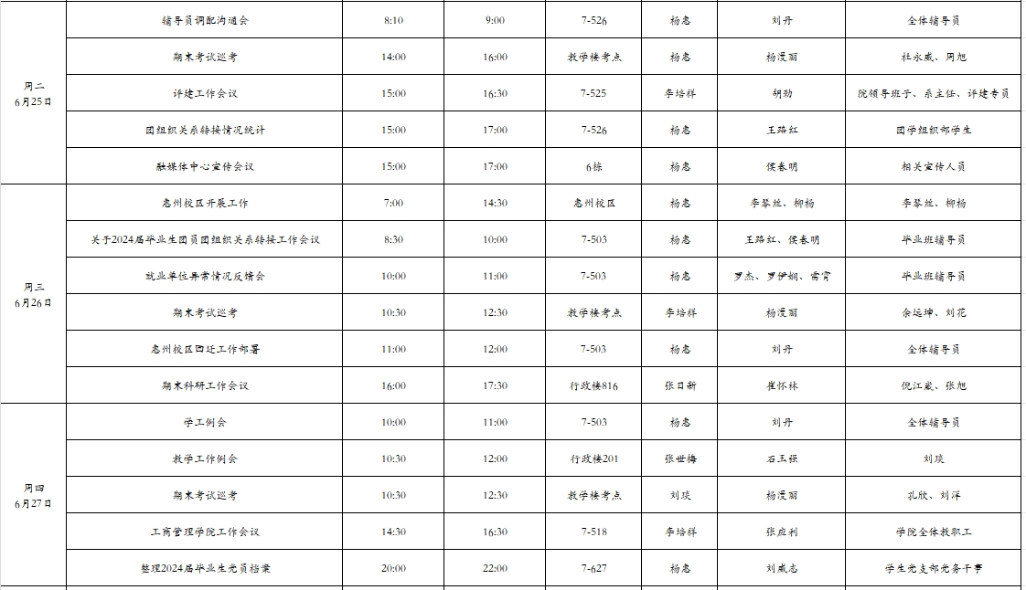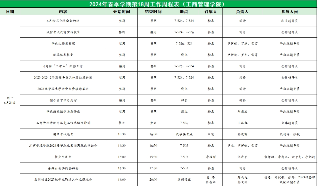 2024年春季学期第18周工作周程表