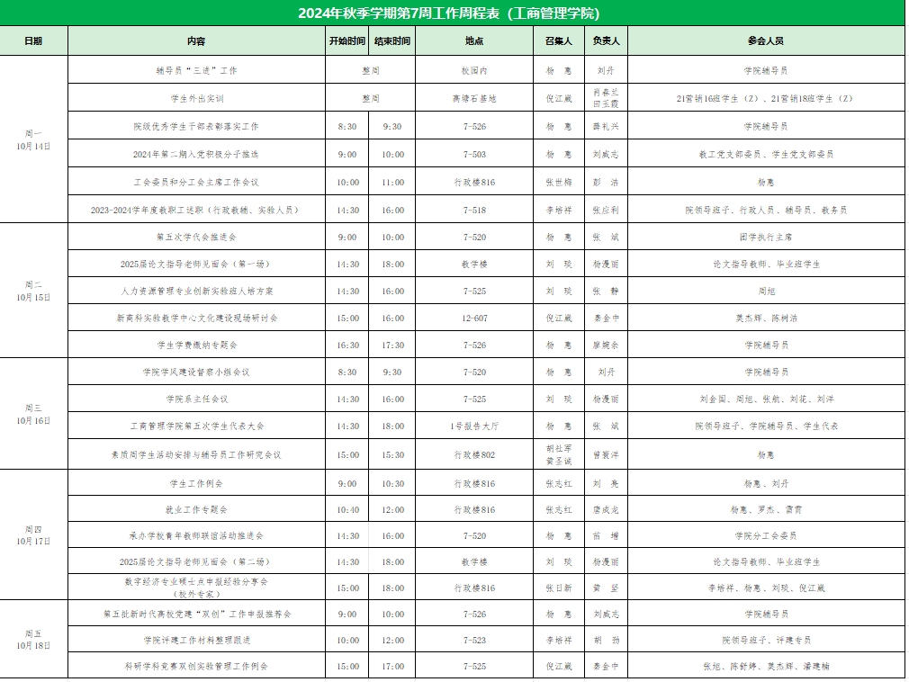 2024年秋季学期第7周工作周程表