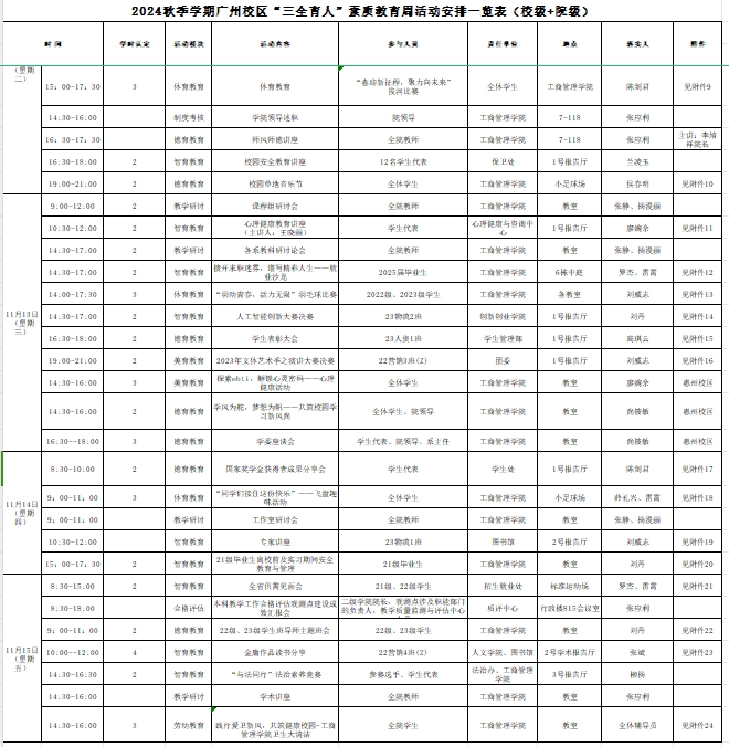 2024年秋季学期广州校区“三全育人”素质教育周活动周程表